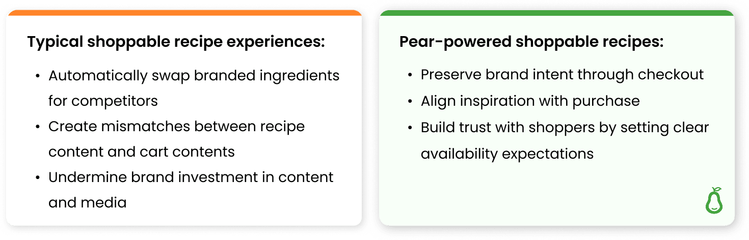 Pear’s brand-controlled, inventory-aware shoppable recipes.