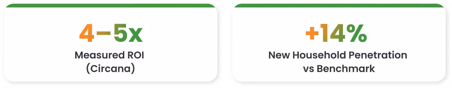 The result: stronger efficiency, measurable incrementality, and meaningful household penetration gains at scale.