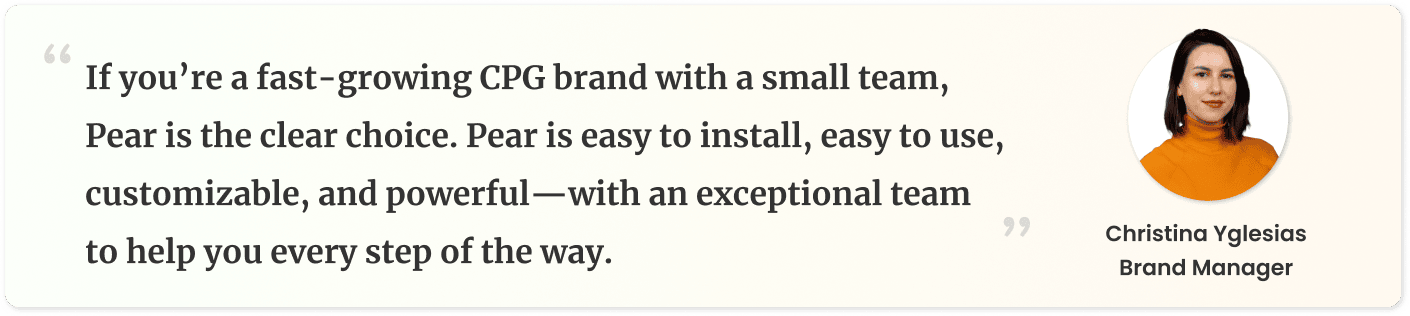 "The entire process was fast, streamlined, and a low lift for our busy internal team. We were able to customize several components while still moving along quickly," shares Christina, “The Pear Implementation Team was always just an email or meeting away and quick to help us move decisions along and find solutions for any problems that arose."