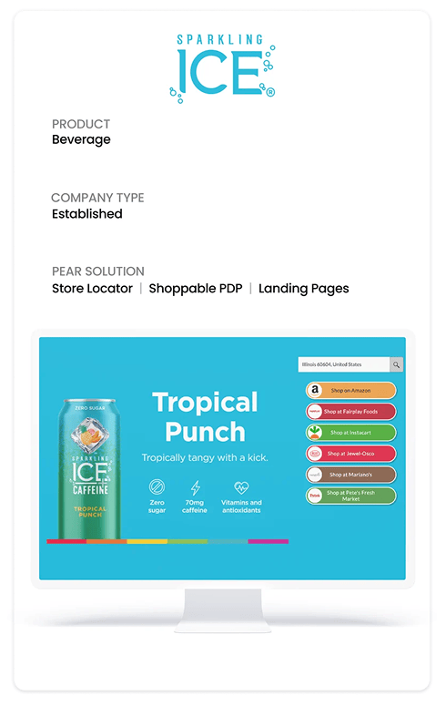 Sparkling Ice partnered with Pear to create a consolidated, end-to-end shoppable experience across both onsite and offsite touchpoints.